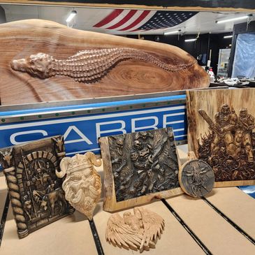 Wood burned, classic looks, colorful looks, engraved letters, carved images, epoxy inlays, we can make it happen!